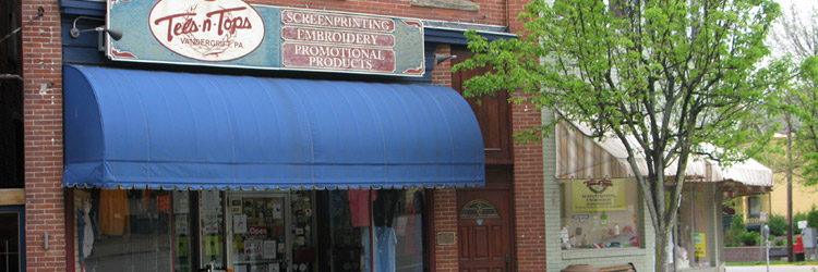 Welcome to the Tees N' Tops website. We are a small business run out of the town of Vandergrift,PA and have been operating for over 30 years. We offer a wide variety of clothing and provide any custom screenprinting or embroidery you need at discount prices. We also offer a wide range of promotional products to meet all of your business needs. Feel free to contact us with any questions you may have.